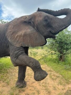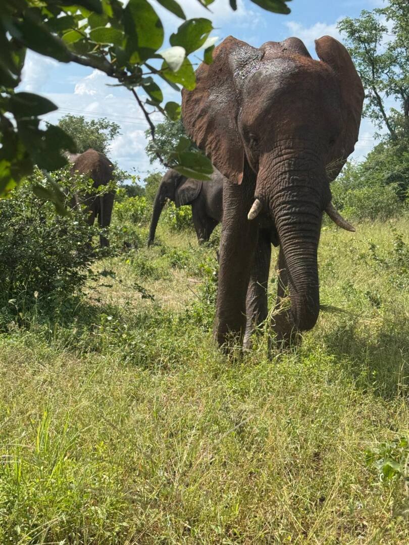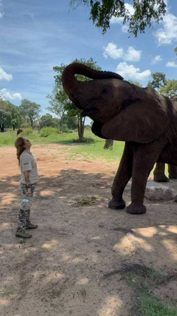 Their matriarch, Madinda, guides the herd with gentle authority. Every day, they wander through the open landscapes along the Zambezi, often crossing the river and sometimes even strolling into Zimbabwe before making their way back to the sanctuary for food, rest, and comfort. They always know where home is.